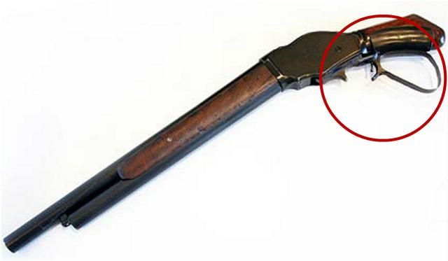 这样的设计通常需要一手持枪,另一只手推动拉环完成上膛,如果看过州长阿诺德·施瓦辛格主演的电影肯定会持反对意见,·施瓦辛格在电影中手持一把M1887,骑着拉风的机车,单手上膛(还甩了一圈)、射击、一气呵成。