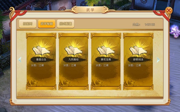 九阴真经,葵花宝典,绝世的武学秘籍重现江湖,玩家通过学习对应的秘籍即可习得对应招式,上等的武学可以提高招式的基础属性,让招式威力倍升!