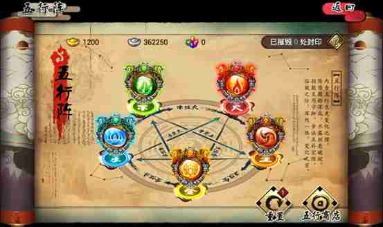 摧毁封印和通关关卡可以得到五行珠和银币奖励,可以在五行商店购买你需要的东西。