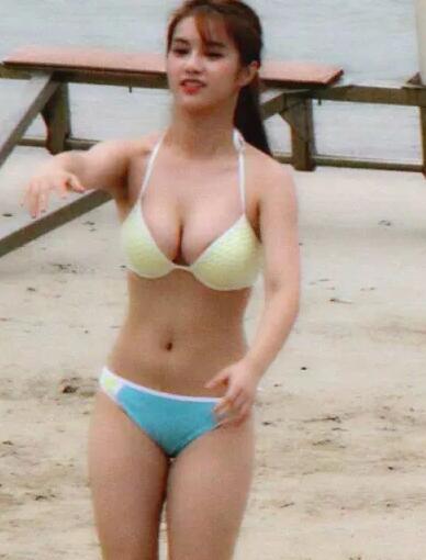 最近,邓月平更是随着剧组,身着3点式在西贡清水湾戏玩,