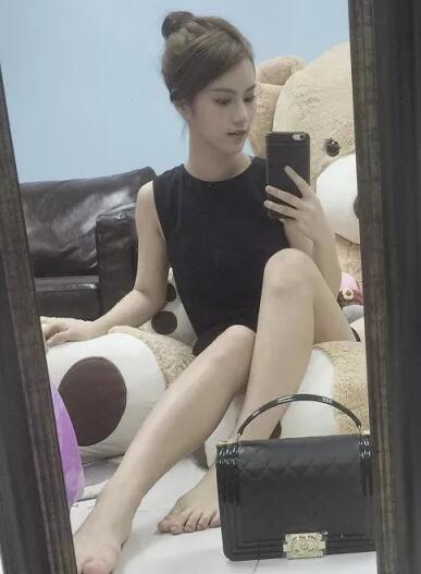 镜头面前对自己身材充满信心的Larine,也不忘在网络晒身材,